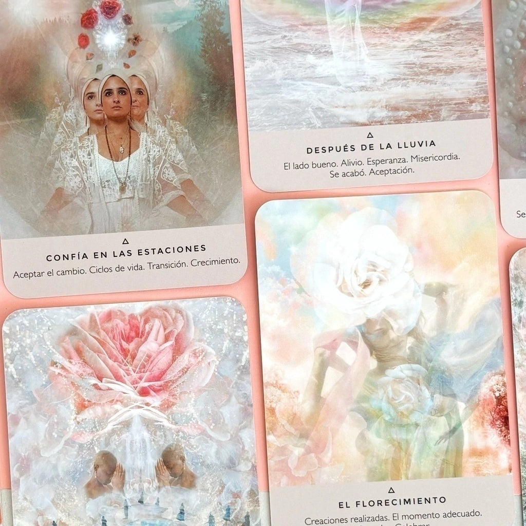 El Oráculo de la rosa te brinda un espacio para que puedas conectar con la energía reparadora, la misteriosa sabiduría y la impresionante belleza de la rosa. Considérala una puerta de entrada al conocimiento, la sanación y los susurros que provienen tanto de la naturaleza como de tu propia alma. Basta con que te detengas un momento frente a una de estas flores en un jardín o en un parque: ese simple gesto activará los misterios sanadores de la Madre Rosa y te conectará con la guirnalda de rosas que está germinando en tu interior.